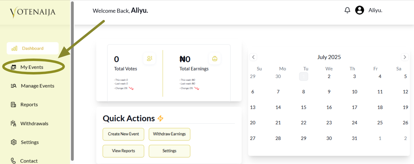 My Events helps you track your event performance and gives you a quick summary of how everything is going.