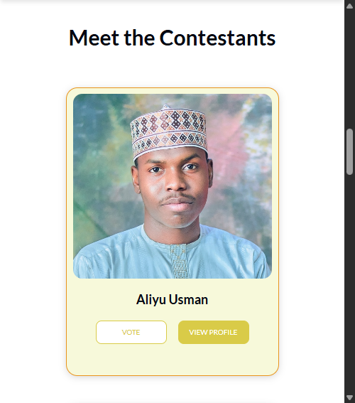 With rankings turned off, that section disappears, and voters only see the list of contestants under the meet contestants section. Each contestant still shows their vote count, but there is no special spotlight on the top three.