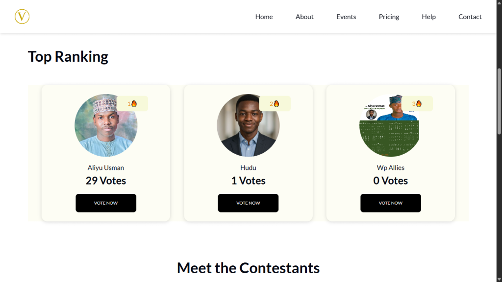 When disabled, that ranking section disappears completely. Voters will only see the regular Meet Contestants section, where every participant is listed along with their vote counts, without any extra spotlight on the top three.