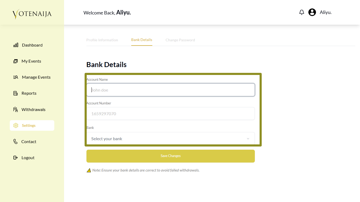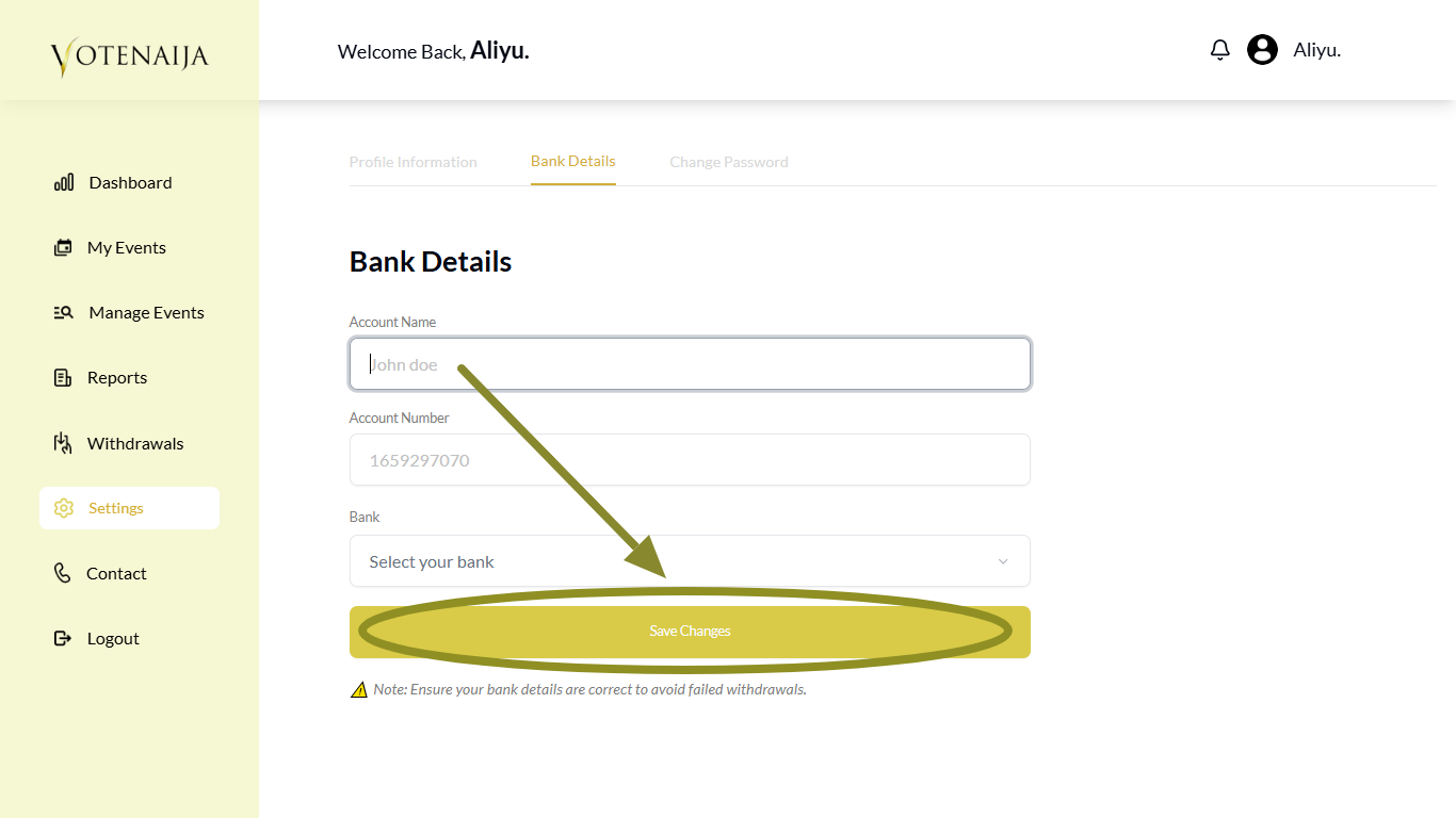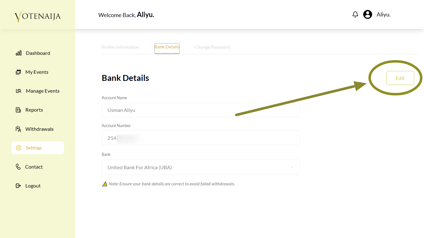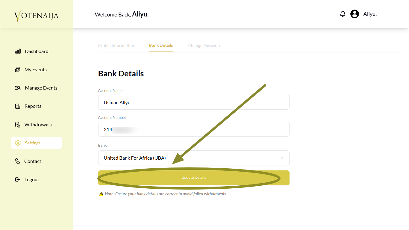 Before you can withdraw your earnings on VoteNaija, your bank account needs to be set up. Without it, the system will not process any payout. This guide will walk you through how to add your bank details for the first time or update them if you ever need to make changes.