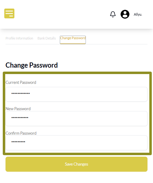 If you are using your phone and want to update your password, you can do it right from your dashboard. Whether it is for extra security or just a fresh start, changing your password is quick and easy.