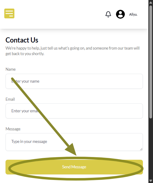 After filling the form, scroll to the bottom and tap the Send Message button.