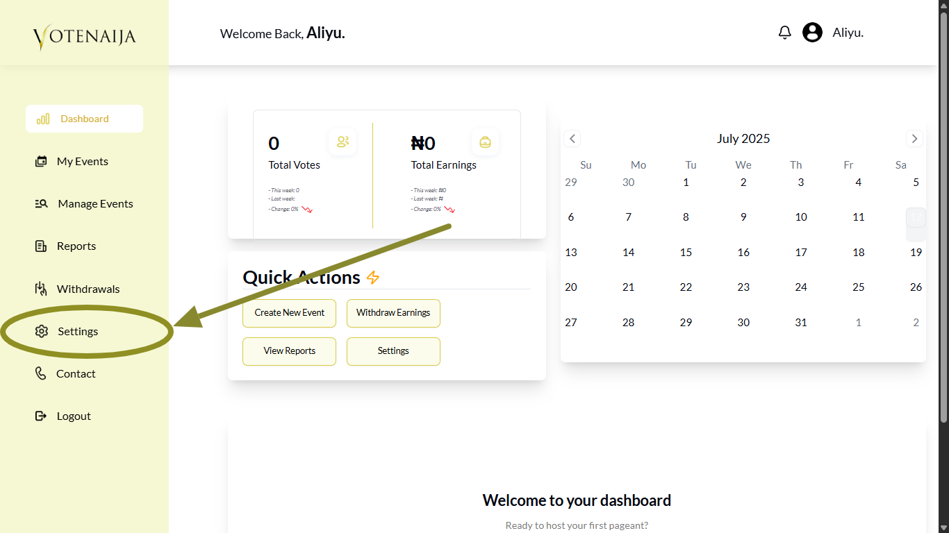 Once you are logged in, you will land on your dashboard where you can manage your events, earnings, and account settings.