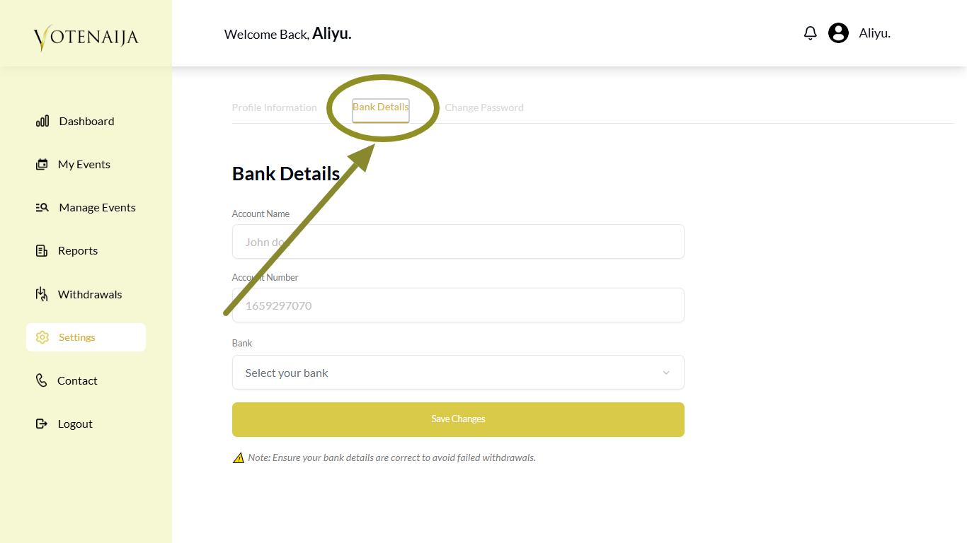 If you want to withdraw money from your VoteNaija account, the first thing you need to do is set up your bank details.