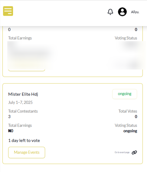 You can also track the overall performance of all your events right from your dashboard homepage. It shows the total number of votes and total earnings across every event you’ve created.