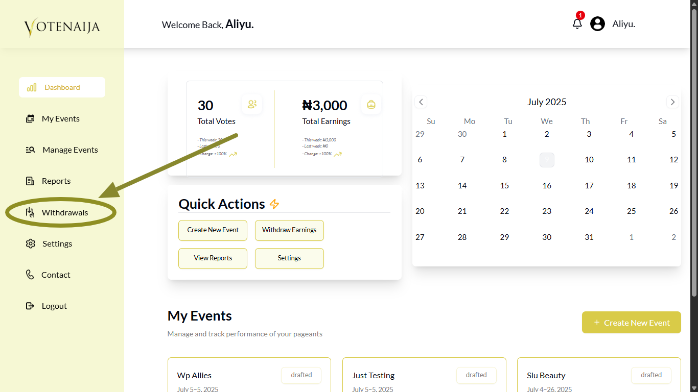 - Understanding Your Dashboard: Votes, Earnings and Event Summary (On Your Computer)