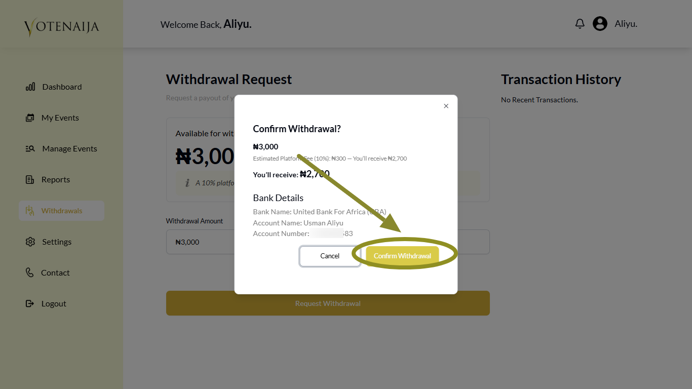 Keep in mind that VoteNaija takes a ten percent fee from each withdrawal. So if you withdraw five thousand, you will receive four thousand five hundred while the remaining five hundred goes to the platform.