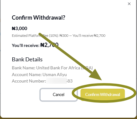 Also remember, the platform takes ten percent from every withdrawal. So if you withdraw five thousand, you will get four thousand five hundred while five hundred goes to the platform as a service fee.