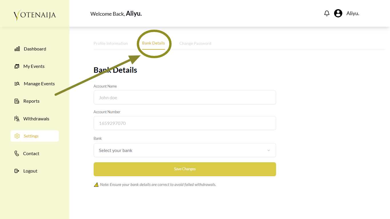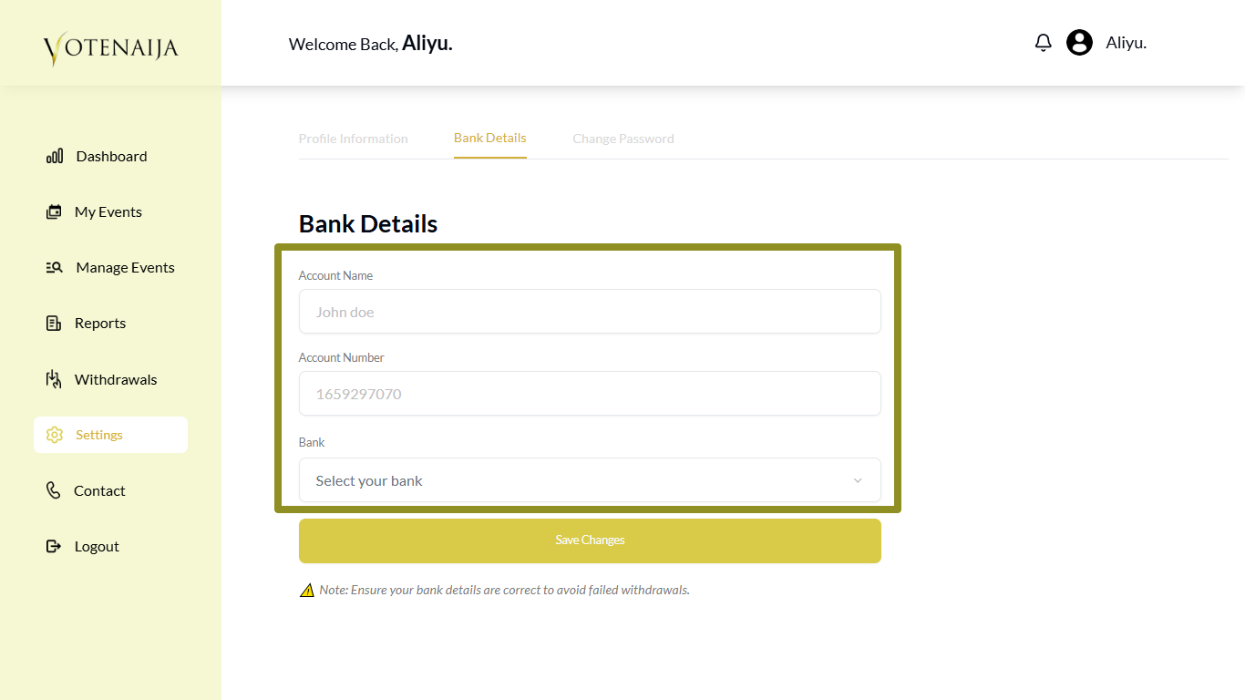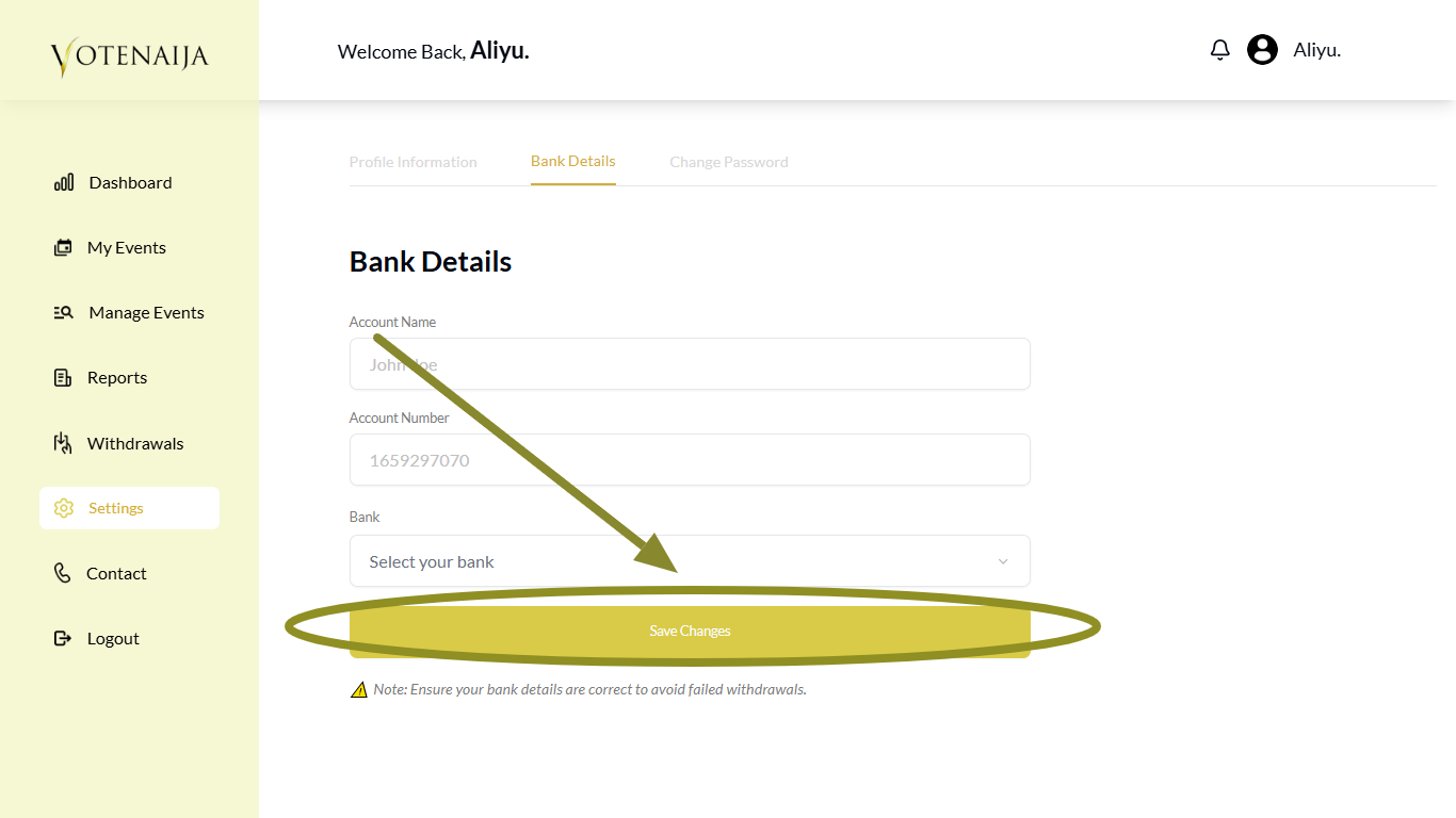 You can use regular banks or mobile wallet accounts like Opay and Moniepoint. Just make sure the name and number match correctly.