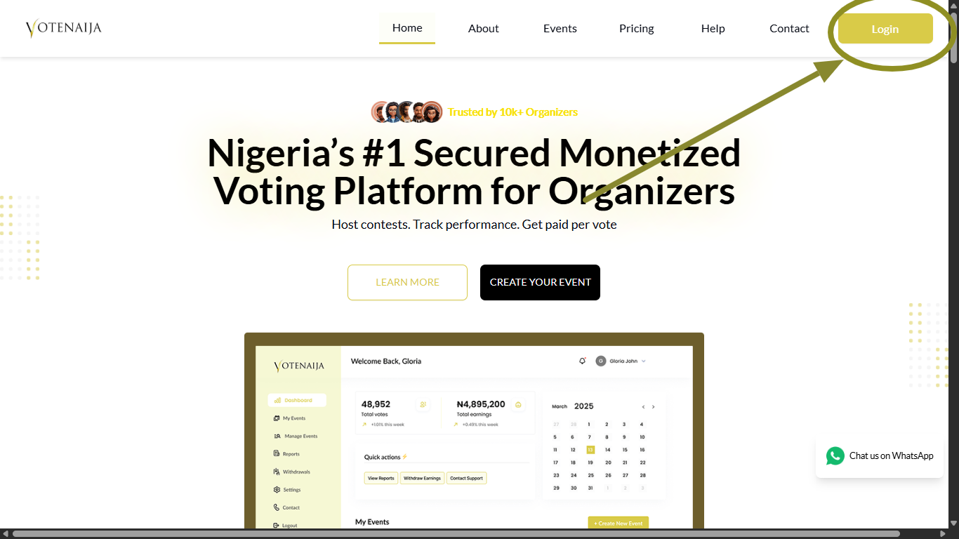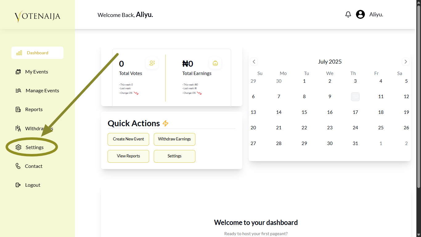 Once you are logged in, you will land on your dashboard where you manage all your event and account settings.